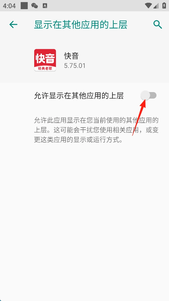 点击屏幕右侧的开关,允许显示在其他应用的上层。