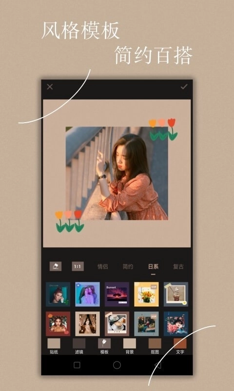 Chic风贴纸:超1000款Chic风格贴纸,涵盖清凉夏日、复古风情,还有原创手绘等多元风格,后续会持续更新,助你打造流行感~ 海报风模板:只需一键就能轻松更换模板,风格瞬间切换,支持1:1和9:16两种常用尺寸,是懒人发圈的贴心必备!Chic修图的模板设计简约又百搭,时尚感拉满还特别好看~
