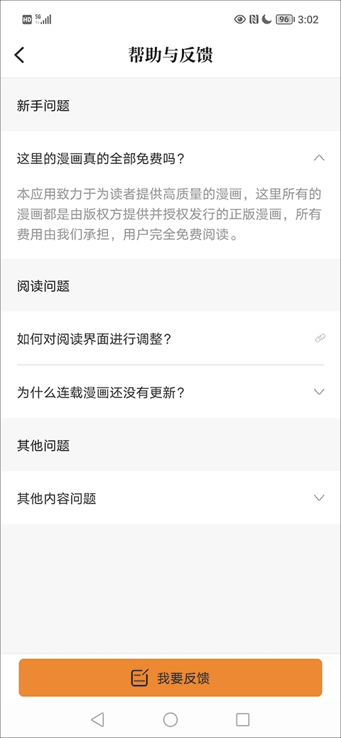 在“帮助与反馈”界面,用户可以查看常见问题解答。