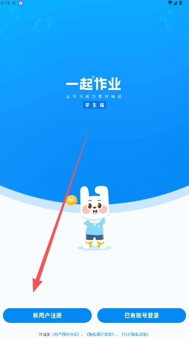 1、学生新用户点击注册。