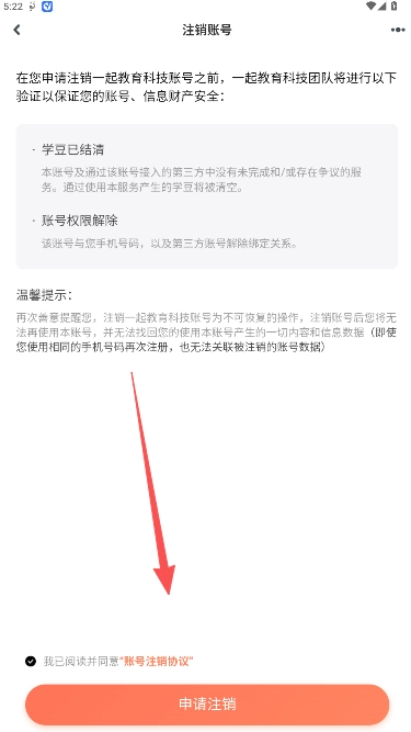 4、确认注销相关注意事项内容,点击申请注销。