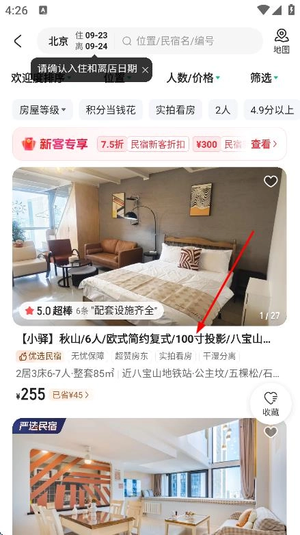筛选查找房源的操作步骤如下:打开应用后,在首页依次填写目的地、入住与退房时间以及入住人数,接着利用房源类型、价格区间等筛选条件进一步缩小搜索范围,就能查看符合自身需求的房源列表了。