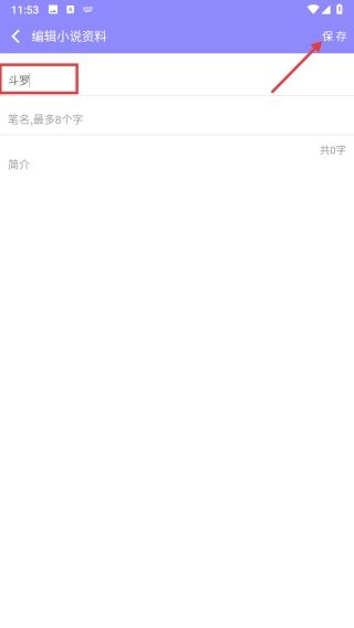 在小说资料编辑页面,输入小说名称“斗罗”,点击保存按钮,即可完成小说的创建操作。