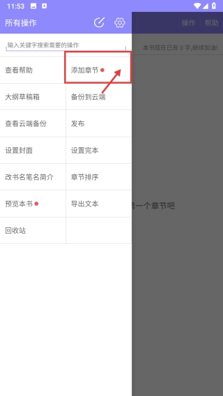在小说的操作界面里,找到并点击添加章节的选项,随后就可以着手创作小说章节的具体内容了。