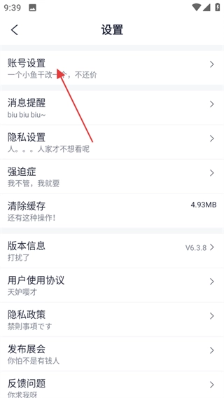 在设置界面中,找到并点击账号设置这一选项,即可进入对应的账号设置页面。