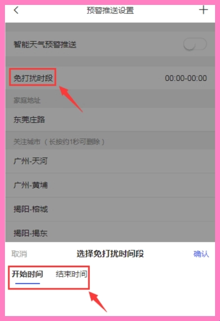 ③选择免打扰时段,在您选择的时间段内不推送信息;