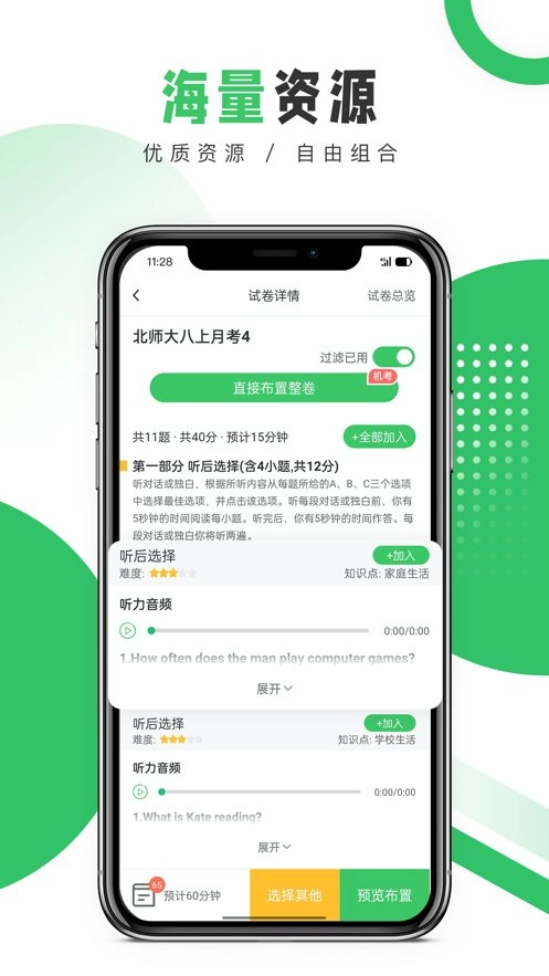各类试卷、试题资源与各地教材保持同步,内容具备权威性,并且与英语周报等机构开展合作,资源内容持续扩充。