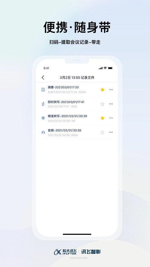 【会议记录管理】使用讯飞AI投影仪或讯飞AI麦克风投屏器完成会议录制后,您可借助讯飞智影手机端,对会议音频、精准逐字转写的文稿等会议记录进行提取、查看、编辑、分享与管理,效率轻松超越专业速记员~