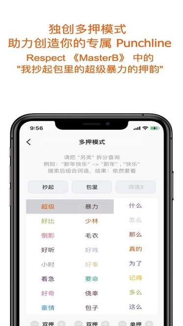 音节押韵、相似押韵与精准押韵模式现已上线(默认采用音节相似押韵,助力大家打造更丰富多变的韵脚)。词库更新功能同步开启,实时更新最新词库,网络热词与最新韵脚一网打尽,为作词提供更广阔的创作思路。快来开启创作之旅,写下每一首专属你的说唱音乐吧!
