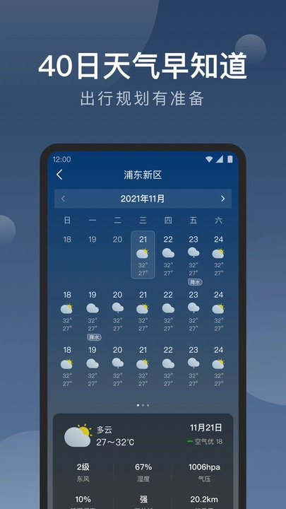 1、天详细预报:涵盖阴晴雨雪、气温气压、风力风向及空气质量等信息,助您从容出行。