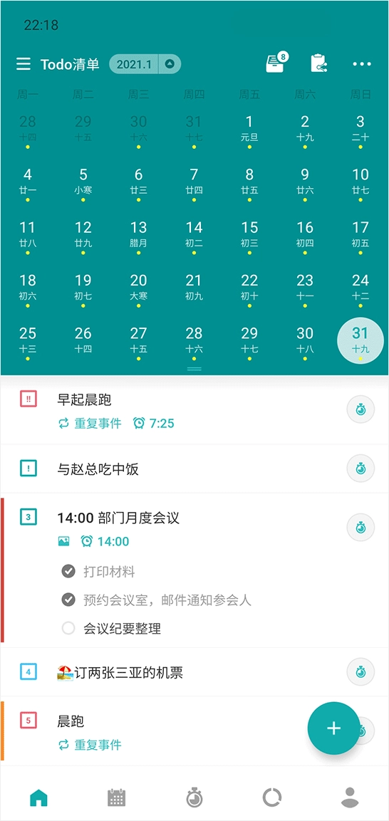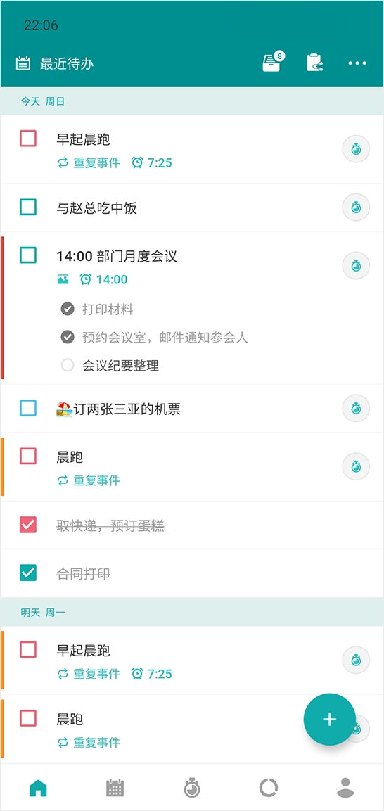 待办事项:安排事件,子任务,重复事件,工作量,优先级排序等