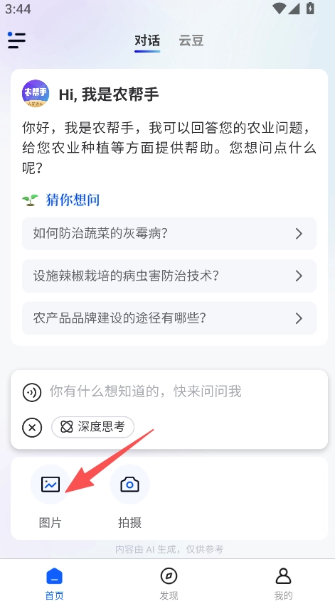 2、支持图片上传功能,通过图片辅助描述农业问题,问题传达更准确,解答更贴合实际。