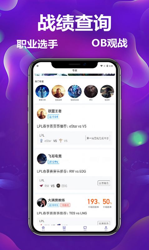 1.让所有爱好者随时都能掌握实时比赛信息,分析赛事数据,了解各队选手情况;