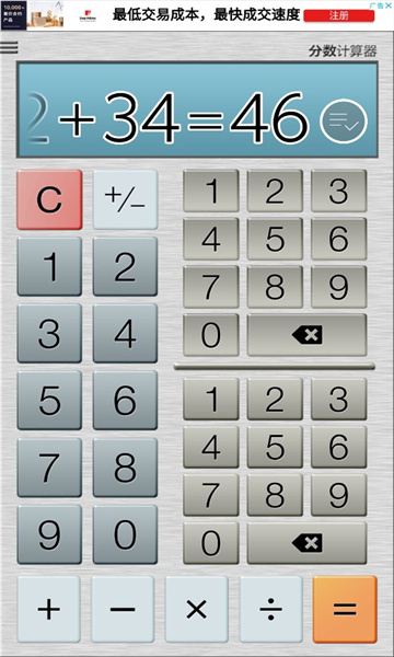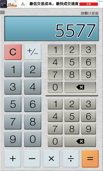 1. 在本站完成软件安装后,点击进入,此时键盘上设有整数区、分子区、分母区以及运算符号。