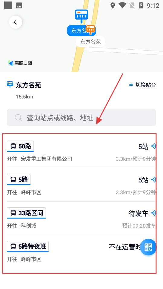 搜索后进入站点页面,就能查看该站点的多条公交信息。