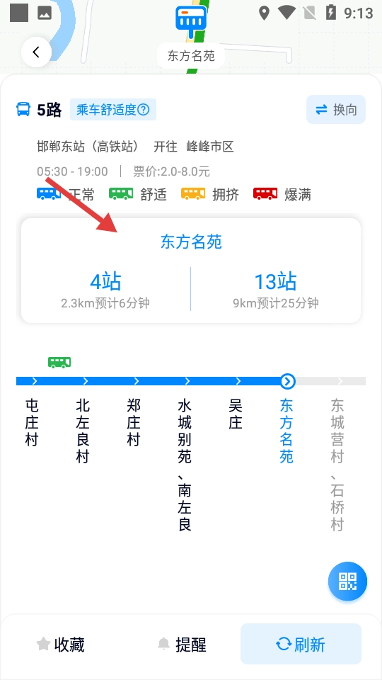 4、点击像【5路】这样的具体线路,就能查看该线路的运营时间、票价、乘车舒适度,还有站点之间的距离和预计耗时等详细内容。