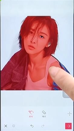 当处于画笔模式时,我们能用手指在画面上进行涂抹操作,那些被标记为红色的区域就会被提取出来,作为前景部分。