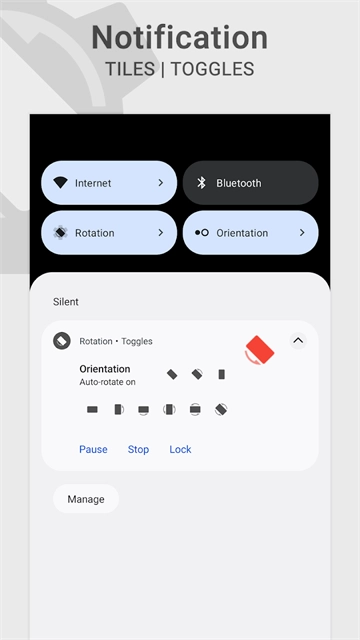 Rotation是一款实用的屏幕方向管理工具,它具备丰富的屏幕旋转模式与灵活的条件设置功能。其中,旋转模式涵盖自动旋转、强制自动旋转、强制纵向、强制横向等多种选项,能让用户更自由地调整屏幕方向,体验便捷的操控感。此外,该工具支持依据特定应用或事件(如来电、插入耳机、设备充电等场景)自定义旋转规则,帮助用户实现更精细化的屏幕方向管理。