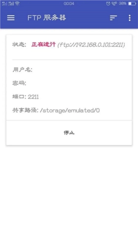 要是你希望保障自己传输的安全性,也可以点击右上角,设置FTP端口、文件共享路径、登录密码之类的内容。