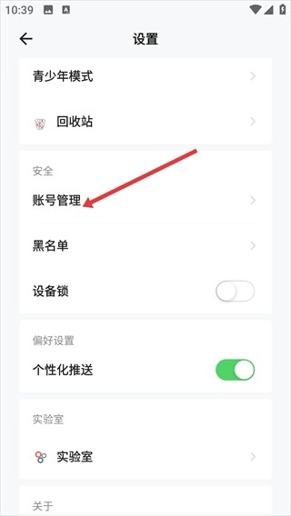 2、接下来找到【账号管理】选项,点击进入账号操作页面。