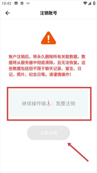 4、进入注销账号页面后,仔细阅读相关提示信息,接着在指定输入框中填写“我要注销”,最后点击“立即注销”按钮就完成操作了。
