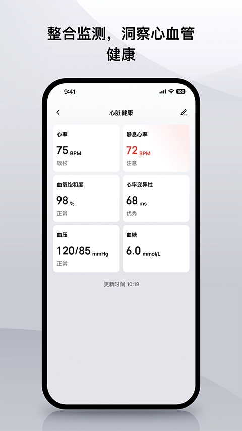 可记录步数、睡眠时长、心率变化、能量消耗、心电波形、血氧饱和度等多项身体状态指标数据,且能随时获取针对这些数据的专业解读内容。