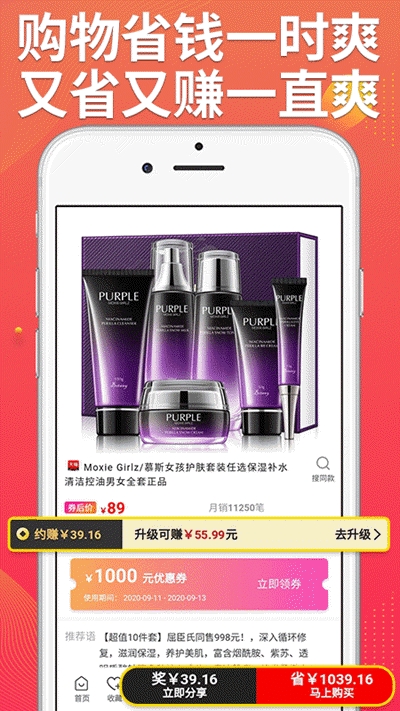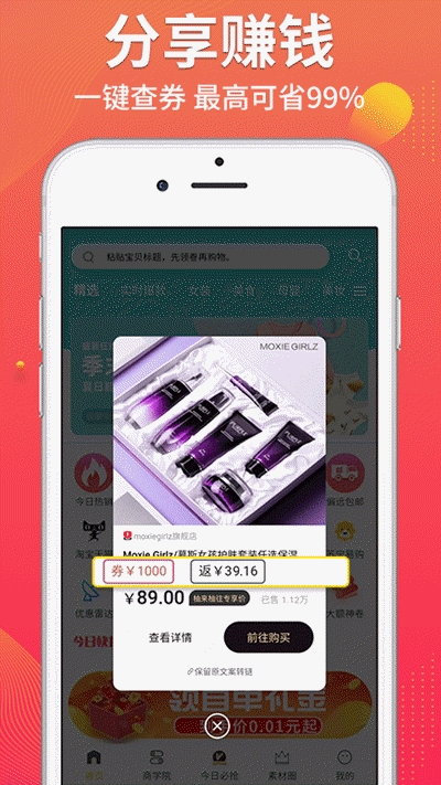 2、自用省钱,吃喝玩乐购全部都能省,分享赚钱,一键查券最高可省99,购物省钱一时爽,又省又赚一直爽;