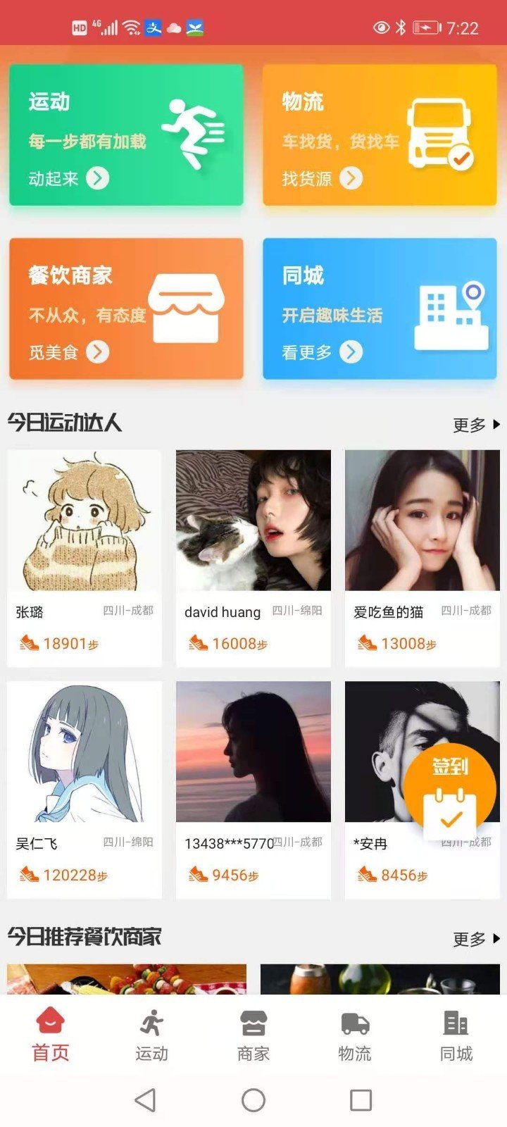 3、为用户提供同城招聘服务,同城物流服务,餐饮折扣券,同时用户可以通过走路和签到获取对应的众享晶石。