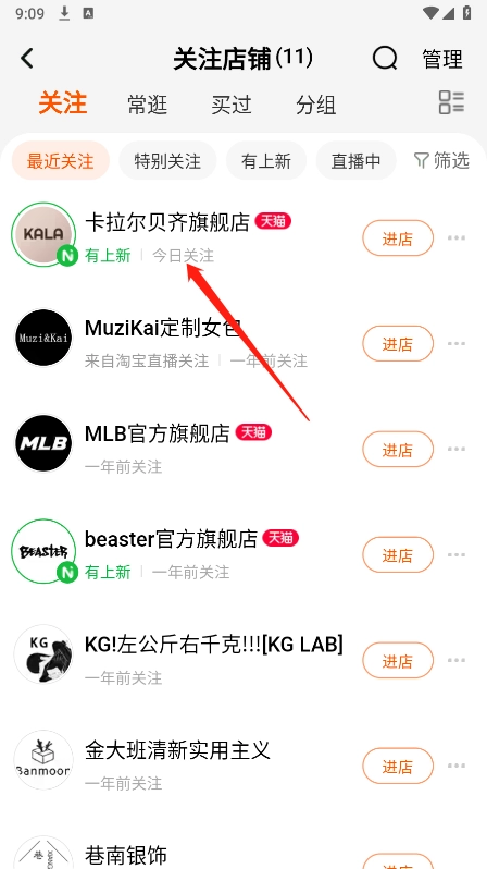 回到首页,点击关注店铺就可以看到了。