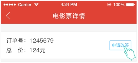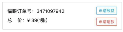 在“我的-我的订单”里找到还没取票、需要自助改签的电影票订单。
