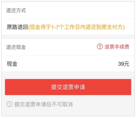 点击进入后,找到“申请退款”按钮并点击,即可启动退票流程(若该按钮显示为灰色,则表明当前订单不符合退票要求)。