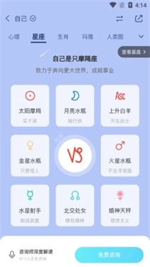 2、在这里可以看到根据用户注册时填写的个人信息推算出的星座属性。