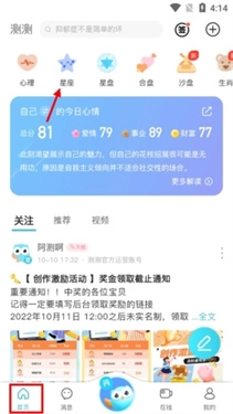 1、进入测测的首页,点击选择“星盘”