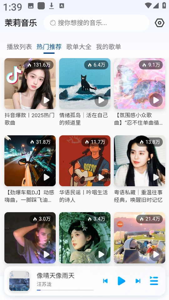 茉莉音乐是一款全免费的听歌应用,无需开通会员也没有广告干扰,能直接在线畅听全网热门曲目,还支持将无损音质的歌曲下载到手机。它整合了QQ音乐、网易云等主流音乐平台的资源,无论是当下流行的新歌、经久不衰的经典老歌,还是风格独特的小众独立音乐,只要输入歌名或歌手名称就能迅速检索到。此外,茉莉音乐还会借助算法分析用户的听歌历史,依据个人的听歌偏好生成专属推荐歌单。