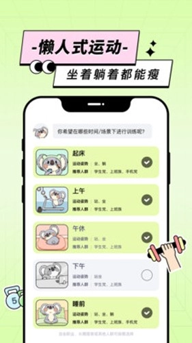 通过简单信息收集,快速了解你的身体,根据你的身体状况量身定制瘦身计划,不限运动场景,随时随地塑造理想身材。