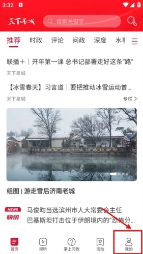 首先用户可以选择在本站下载最新版本的《天下泉城》应用,打开应用后点击首页右下角的“我的”按钮。