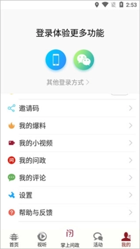 5、点击“我的”功能模块,在这里可以查看自己的评论、问政等内容。