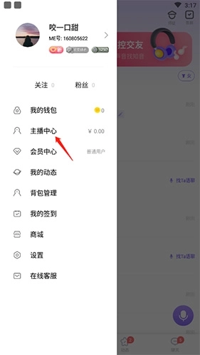 1、打开软件,点击左上角的头像,点击“主播中心”选项。