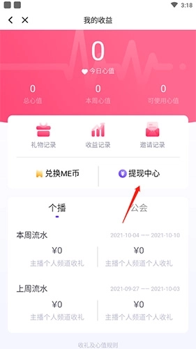 3、点击“提现中心”选项。