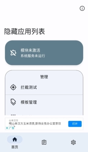 2、待手机重启完毕,打开桌面上的隐藏列表软件。点击模板管理,选择创建黑名单模板(模板名称可自行设置),接着选择编辑列表,找到需隐藏的软件并勾选,所有勾选操作完成后,重启手机。