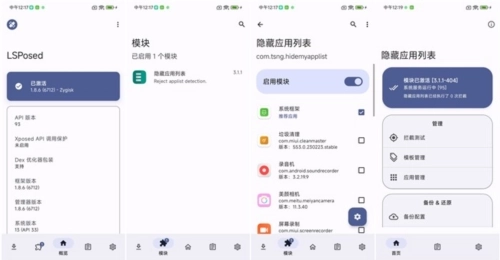 1、和XPosed时代的模块类似,HMA软件同样是一款模块APK,能够在zygisk环境或riru环境下运行,这里建议大家选择zygisk版本。要使用HMA模块,需先激活LSPosed模块。可先参考教程《LSPosed框架正确激活你的LSPosed框架》完成框架激活,接着安装HMA并进入LSPosed框架,点击“模块”选项,找到“隐藏列表”功能,滑动按钮开启该功能,同时勾选“系统框架”按钮,最后重启手机即可。