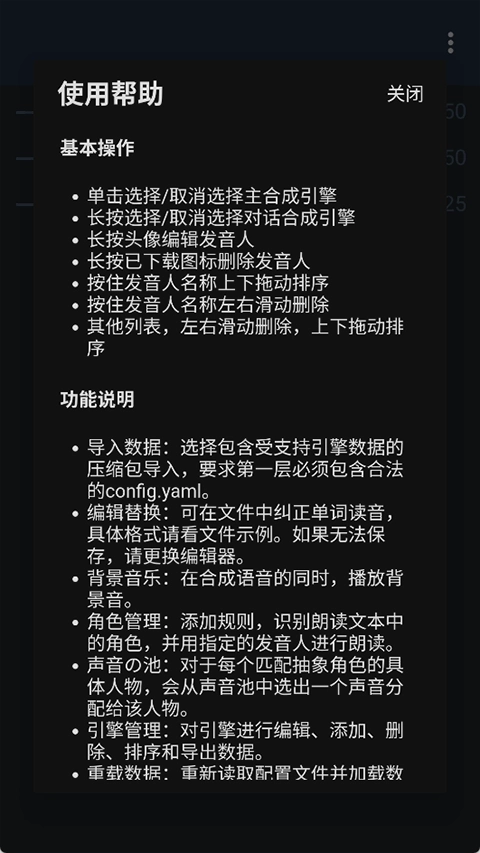 1、点击软件右上角的按钮选择导入语音包,等待一会就有数据了;导入成功之后,就能试听并编辑这些声音了,可以长按它们的头像,单独设置它们的语速音量等参数;