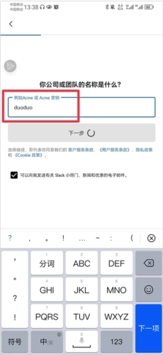 3、然后跟随步骤创建公司或团队的名称、频道等操作