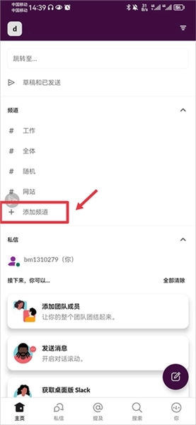 1、在主页中的频道内点击添加频道