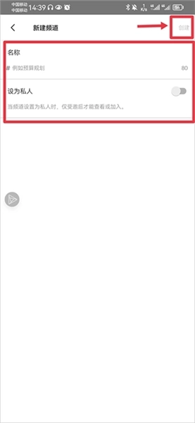3、然后在创建频道中将名称设置完成后点击创建即可