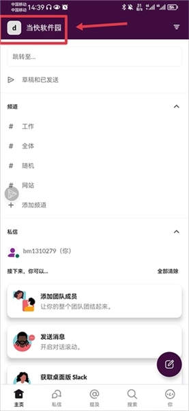 1、在主页中点击左上角团队名称