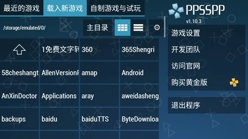 2、接着随意打开一个游戏,此时会发现菜单里新增了一个金手指选项,暂时不用理会它,先退出ppsspp(要是在这一步进入游戏会直接卡顿,那就自己在PSP文件夹里创建一个cheats文件夹,这样应该就能解决问题了)