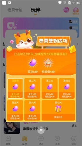 3、每天可以签到获得豆子和经验值。