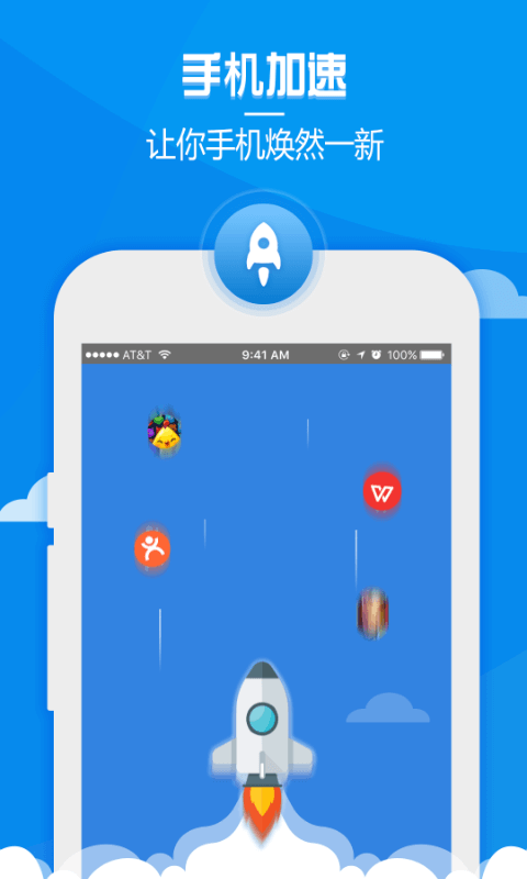 支持手机加速,可随时单击手机加速以加快后台手机的清理速度并释放手机内容。