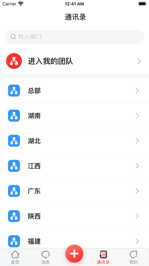 2、功能结构说明:社区、公告、会议室预定、工作台、通讯录、我的、版本检测;